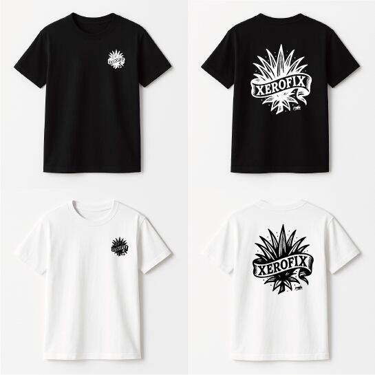 乾いた地に、鋭く根を張る――アガベの力強さを象徴する「XEROFIX」のロゴを胸元と背中にプリントした一枚。